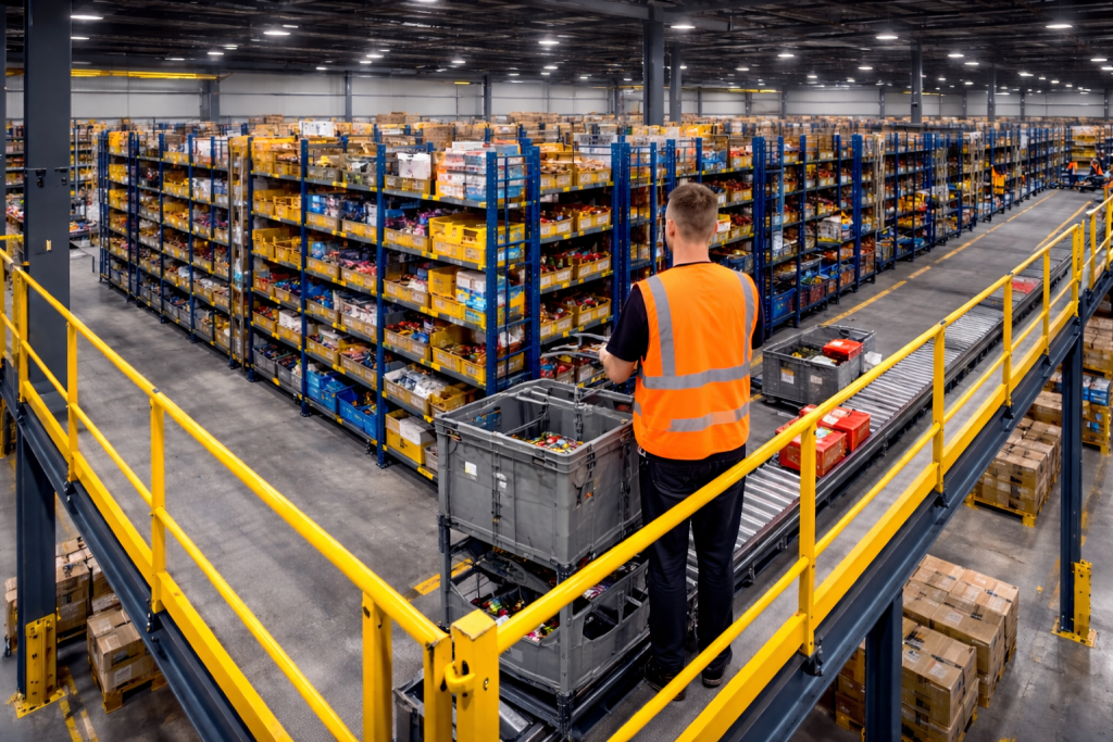 Picking por niveles, torres de picking, buffers de empaque, plataformas para AMR,